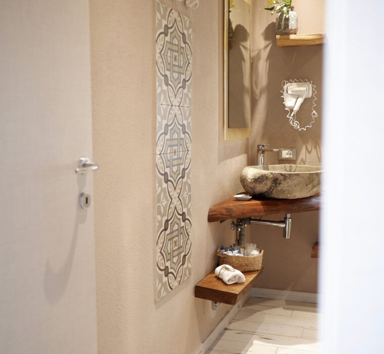 Le dotazioni interne: Smart TV satellitare, topper in Memory, frigobar, bollitore, vassoio di benvenuto.